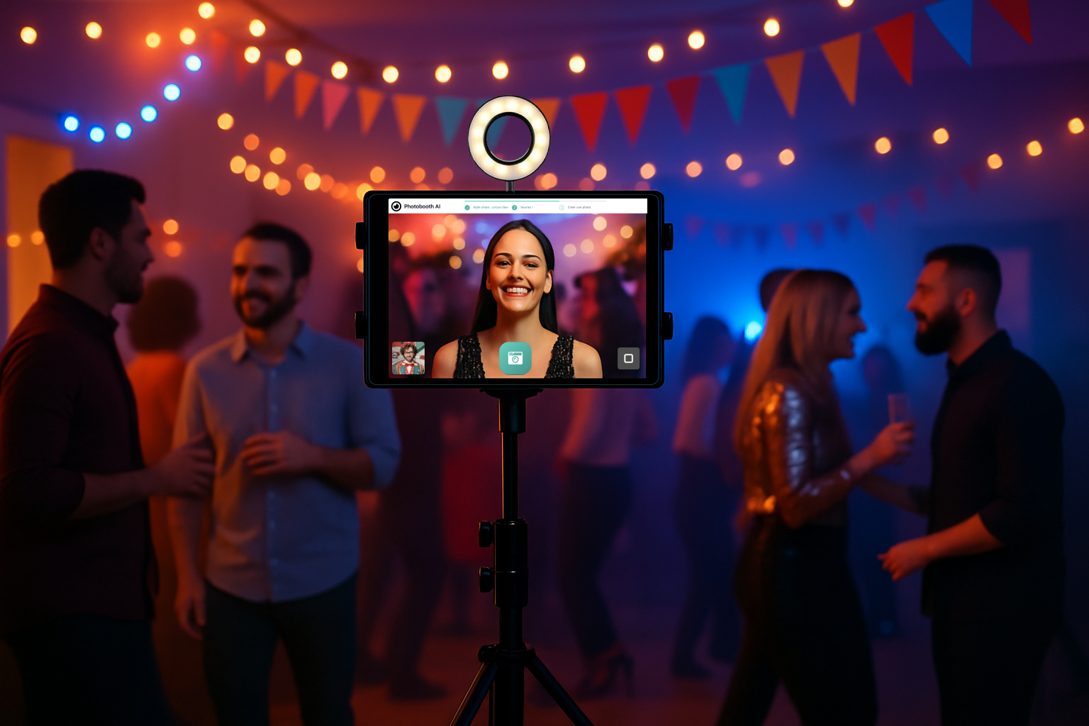 A tablet, phone, or computer, an internet connection, and a few accessories are all you need to set up your own photobooth in just a few minutes. Discover step-by-step how to do it with Photobooth AI.