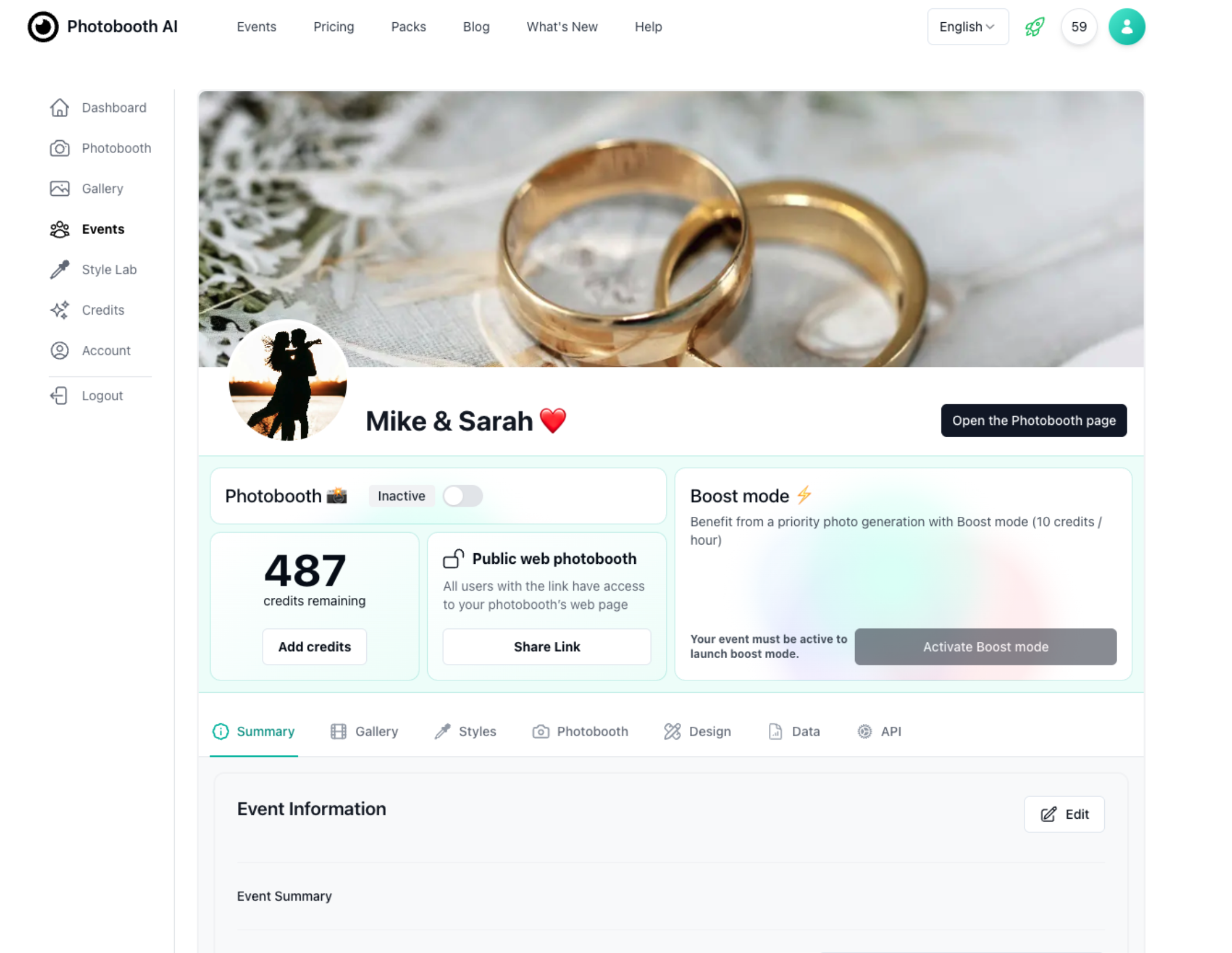 Create an online photobooth from your phone, tablet, or computer. Have fun with our AI styles or personalize your photobooth for your guests 3 free credits